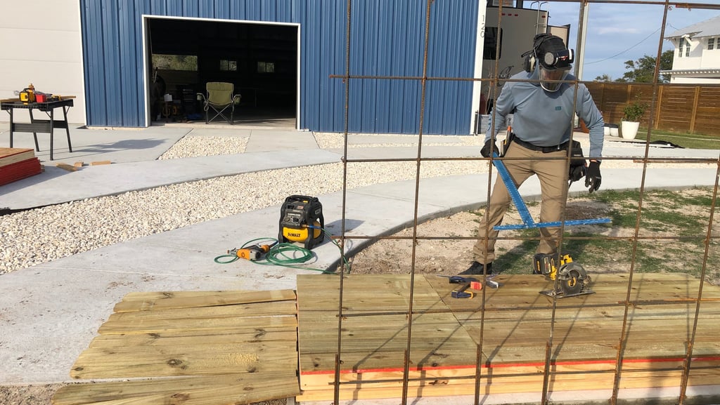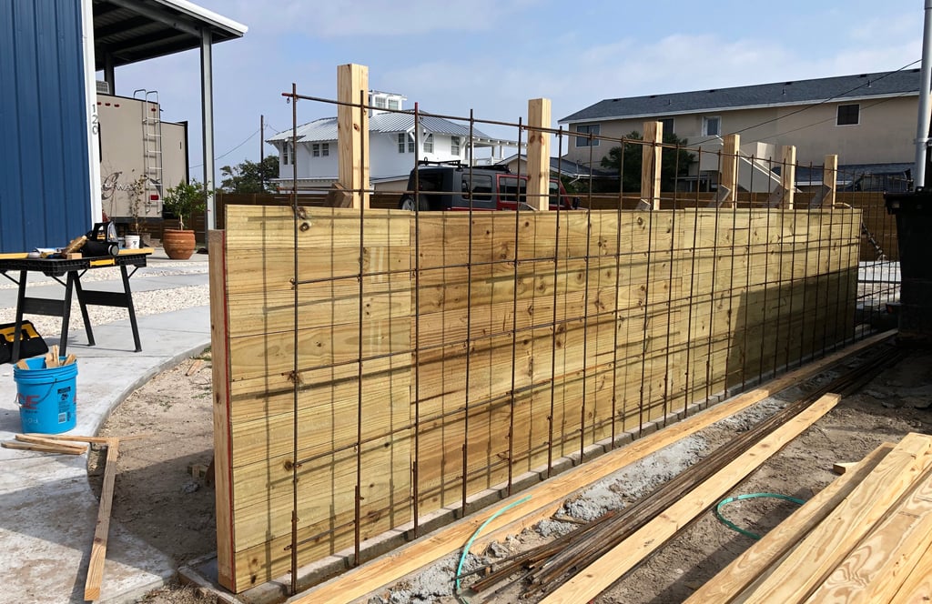For the past few days, Nick has been hard at work outside, forming for the wall along the street (that will rest on our beautiful footing that no one will ever see). Boards will be in place during the pour to give the concrete a horizontal texture, like the rest of the wooden fence on the surrounding sides. It’s detailed work, but we hope the finished product will look nice and give the wall a contemporary feel.