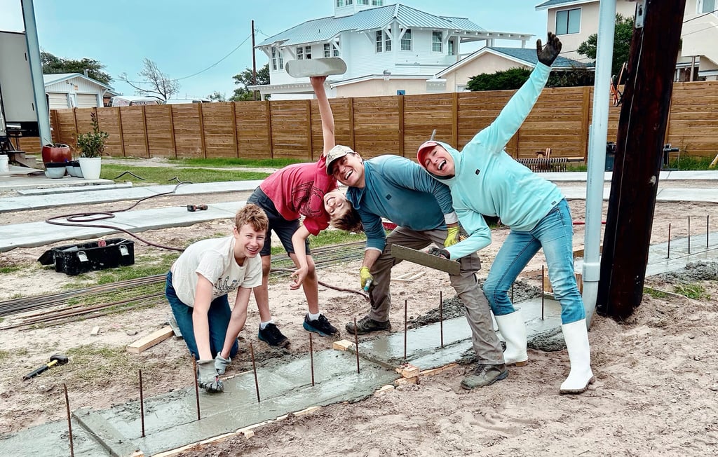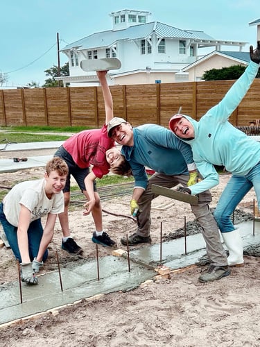 So . . . where did I leave my blog off with our landscaping? We had poured concrete six times before December came upon us, and they were all smashing successes. Here’s a pic of the fam’s seventh pour: a footing for the next pour’s 6-foot-tall concrete wall that will be big enough to hold a gate from both sides of the horseshoe drive.