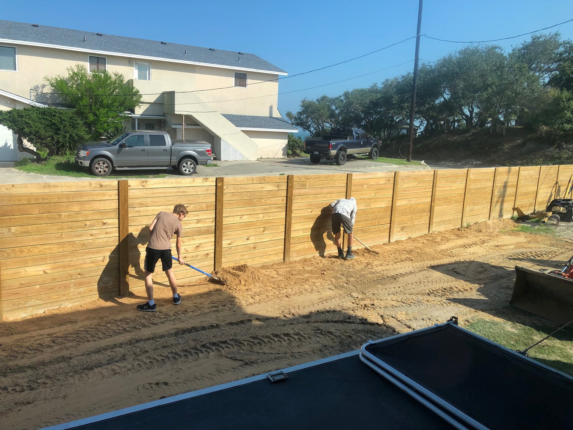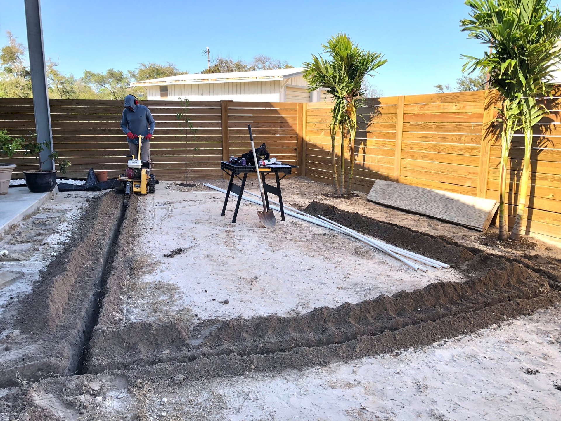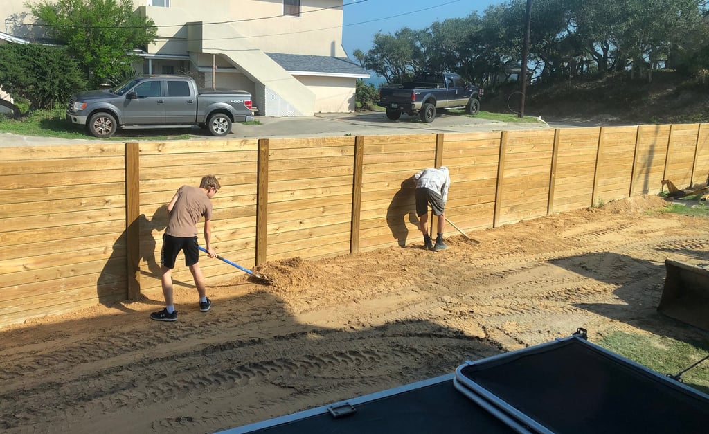 We bought a bunch more dirt to flatten out the land and prep for new sod. (Mar 5):