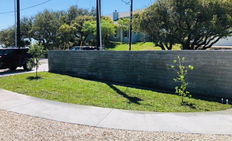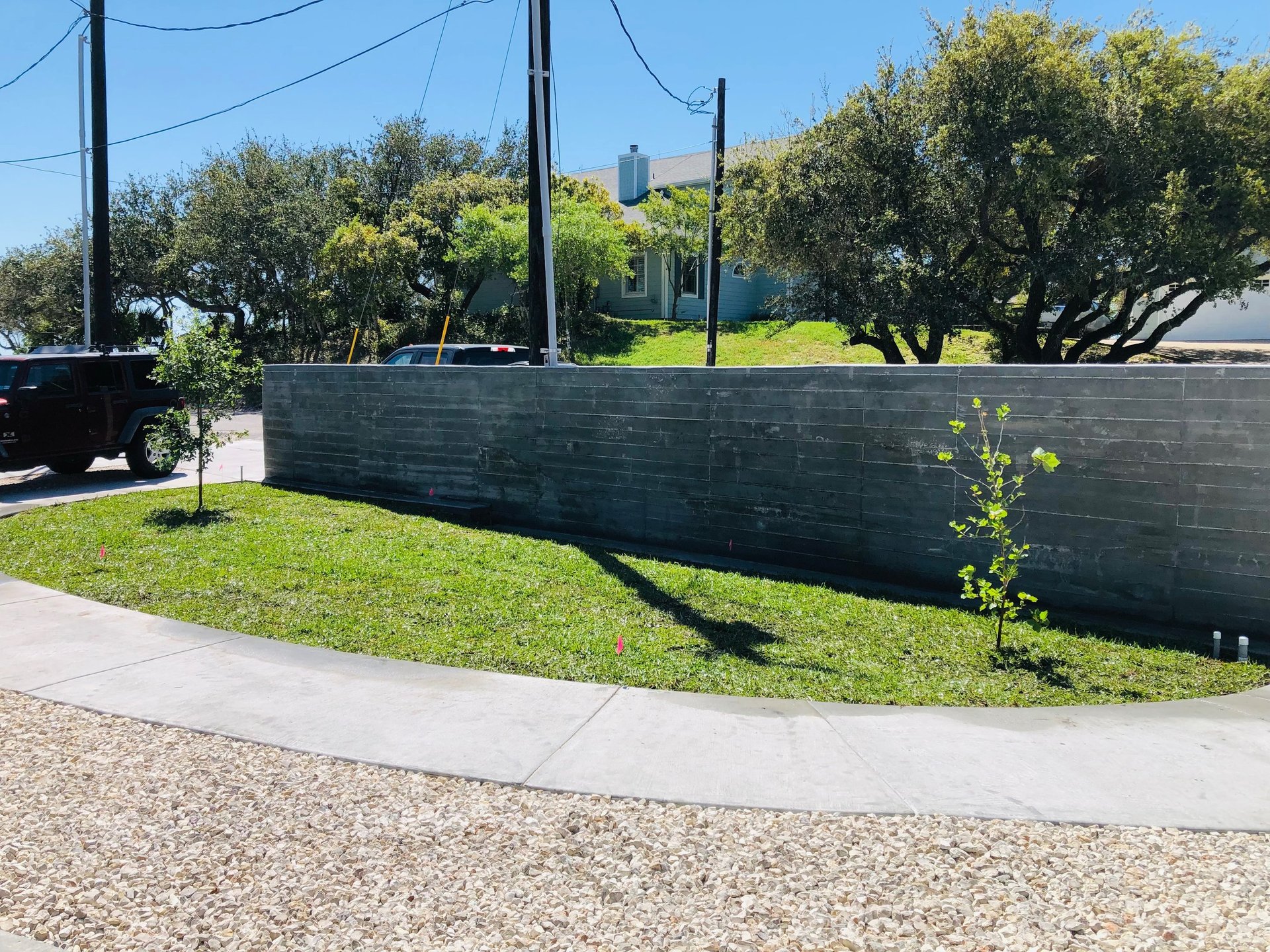 And finally, to top off the day and the “working hours” of the month and 99% of our sitework (stick a fork in us—we’re done!), we planted nine “Green Cloud” Texas sage bushes and xeriscaped with more rocks on the street side of the wall: