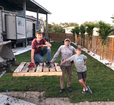 Wowsers, was March a whirlwind! Since the last time I posted about the concrete wall pour (mid-Feb), we’ve been hustling to finish up our sitework so we could be ready to start building the catamaran, the parts of which have been sitting around whispering our names since we picked them up in January. About a month ago, Nick said we need to just pick a start date for our boat. I immediately said April 1st; that way, if we don’t really begin by then, we could always just say we were joking. But still, we strived to meet that deadline—and meet it we did! Yes, folks, we have finished playing in the dirt as of last Friday, then enjoyed the Easter holiday weekend, and actually started building Felicity on Monday, April 1, 2024. No joke! The next blog will tell you how Felicity’s build is going, but this one is for highlighting what we’ve been doing since the wall pour, mostly in pictures since one is worth a thousand words, right?