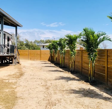 While visiting my parents in East Texas, Tristan happened to spot some Christmas palm trees for sale, which is the type of tree we decided just days before to plant in our yard. We couldn’t find local nurseries that sold them. In the end, we drove back to the coast with six beautiful clusters of palm trees. Let’s hope they stay that way: