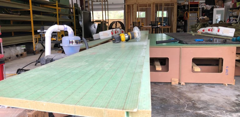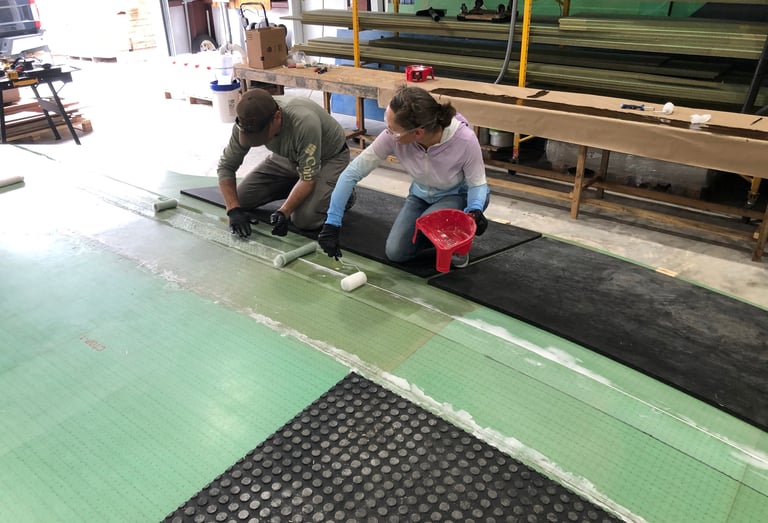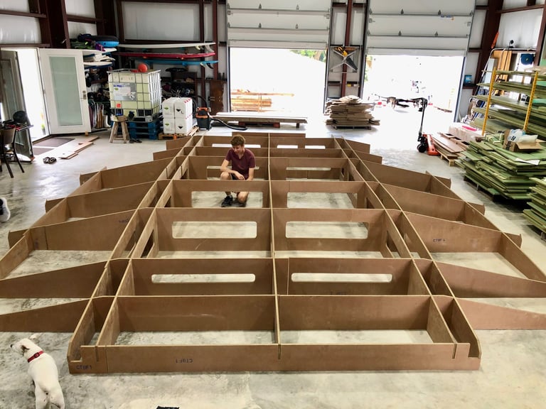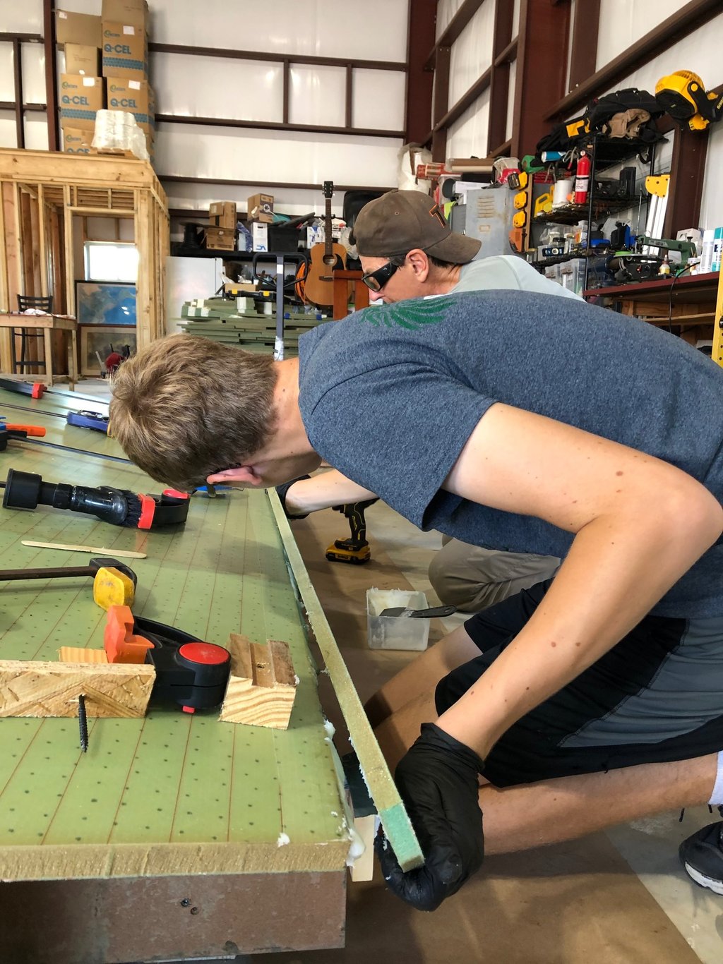 Our plan is to first glue together the cabin top, and then lift it up to the ceiling of our barndo to get it out of the way while we finish everything else that will rest below. Sounds great in theory, but theories are made to be tested.