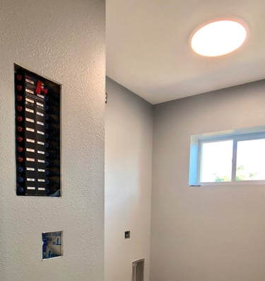 We installed the water heater and placed a utility sink on the exterior wall of the laundry room.