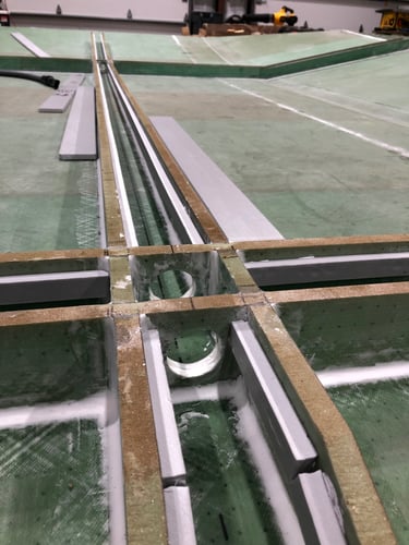 We decided to glue some foam pieces into the beams that would act as a tabletop for the fiberglass to lay on top of. (In case you caught that last sentence, Mom, I can assure you that a preposition is a totally acceptable word to end a sentence with. Supporting colloquialism is what I am all about! That’s what I’m looking for! A grammar rule I can stand behind! I’m all in! I could go on and on, but I’ll simmer down—no need to stop by.)