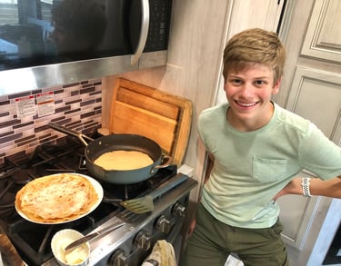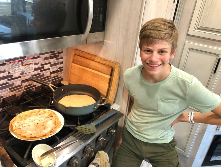 Calvin has been sharpening his skills in the kitchen. He is a big fan of concocting smoothies, fresh ginger ale, and unique desserts (for example, he made baklava out of crepes instead of phyllo). Plus he just finished assembling his ukulele, so I’m looking forward to some fun beach music in the near future.