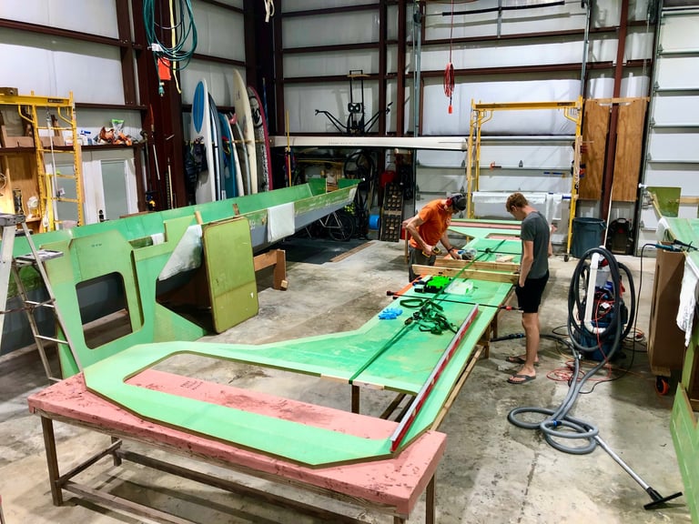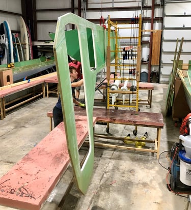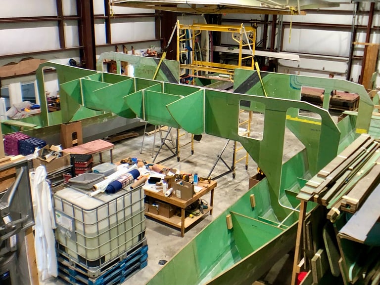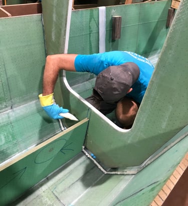 We laid additional fiberglass in the hulls where the major bulkheads would press against the inside of the hulls.