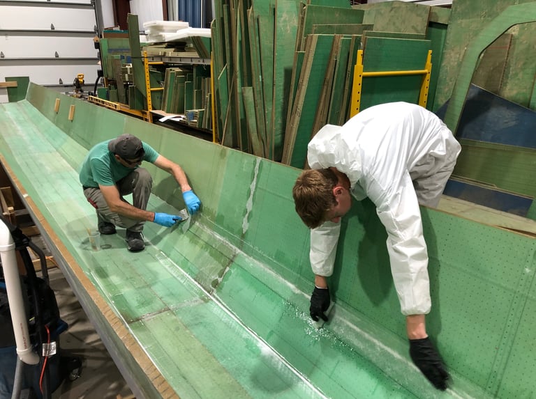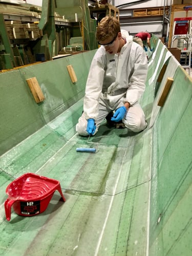 Additional fiberglass layers were added above bulkhead openings for reinforcement.