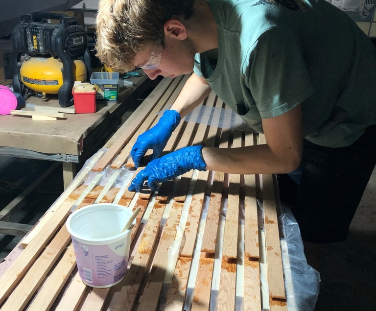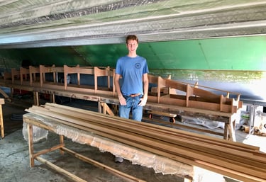 Next, we tapered the ends and glued them together (scarf jointing) to form 25-foot-long planks.